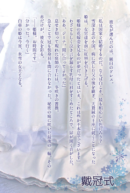 雪深き北の小国。病に伏した父の後を継ぎ、天鵞絨の王座に就くことになった姫は、女官達を前に紅唇を引き上げる。