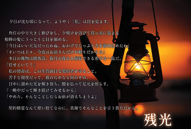 「残光」を含め、素敵な作品たちを一挙にゲットするチャンスですので、ぜひ皆さんご参加くださいませ(^o^)丿
